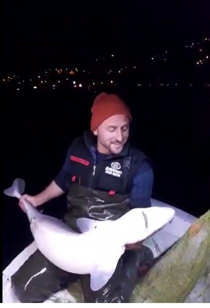 O anlar bir başka balıkçı tarafından kayda alınırken, Akçakale açıklarında avlanan balıkçının ağına üçüncü kez köpekbalığının takılmasıyla gülümseten diyalog başladı. Köpekbalığını ağdan kurtarmaya çalışırken, “Atayrum onu denize yine geliy. Ben sana demedim mi daha gelme” şeklindeki ifadeleri ile izleyenleri güldüren Karadenizli balıkçı, “Nedir bu sardınız bizim Karadeniz’i. Dur fenaluk yapma” tepkisi kısa sürede sosyal medyada yayıldı.