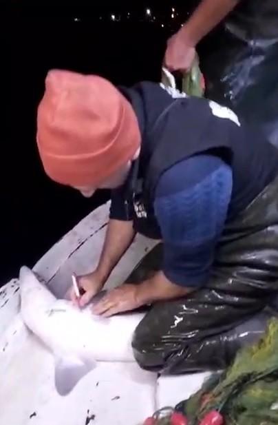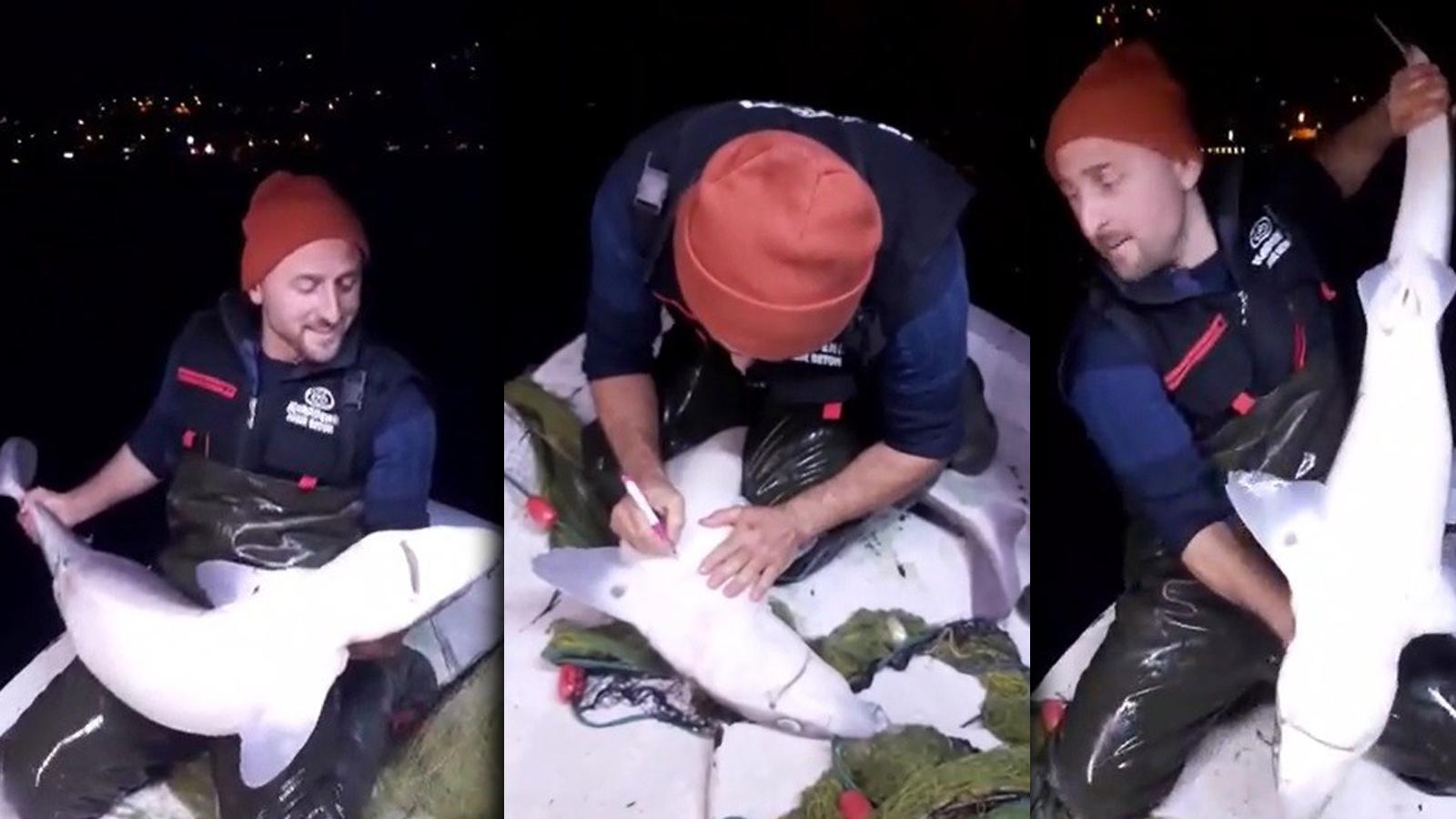 Trabzon’un Akçaabat ilçesine bağlı Akçakale mahallesinde yaşayan Ali Osman Erçin, teknesi ile denize açılarak avlanmak için ağ serdi. Bir süre sonra ağını denizden kaldırmaya başlayan Erçin, köpekbalığının ağa takıldığını fark etti. Köpekbalığını teknenin üzerine çıkartan Erçin, ağa sarılan köpekbalığını kurtararak tekrar denize bıraktı. Ağını çekmeye devam ederken tekrar köpekbalığının takıldığını gören Erçin bu sefer teknenin üzerine çıkarttığı köpekbalığının üzerine tükenmez kalem ile işaret bıraktı.