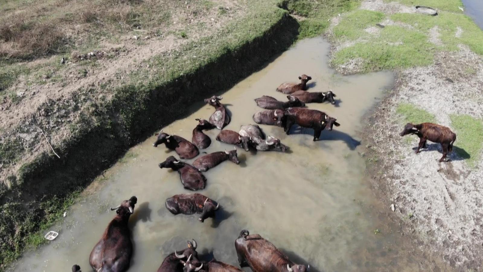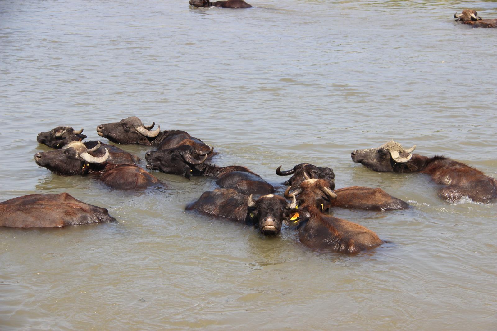 Güneşin en dik olduğu zamanlarda suya ve çamura giren mandalar, akşam üstü merada otlanmak için çıkış yaparak daha sonra çamurlara yatıyor.