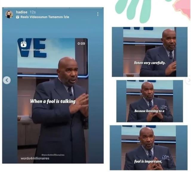 Hadise’nin paylaşımında şu ifadeler yer aldı: “Bir aptal, konuştuğu zaman dikkatlice dinleyin. Çünkü bir aptal konuşurken onu dinlemek önemlidir. Çünkü onun ne yapacağını bilmek, ne yapmayacağını bilmek kadar önemlidir.”