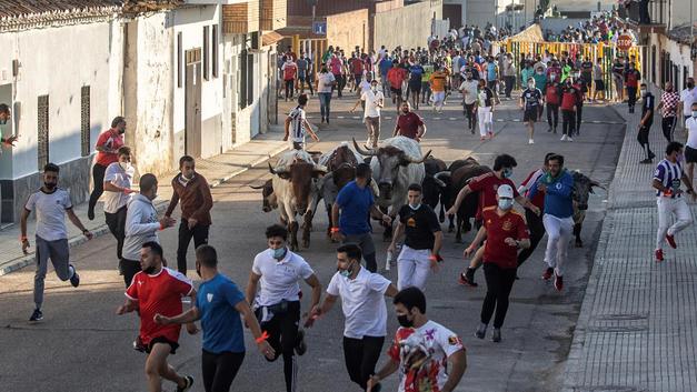 İspanya’nın Kastilya-La Mancha bölgesinde yer alan Toledo şehrine bağlı Villaseca de la Sagra’da bugün başlayan Alfarero de Oro Fuarı kapsamında Kovid-19 salgınının başından bu yana ülkede ilk kez boğa koşusu yapıldı.