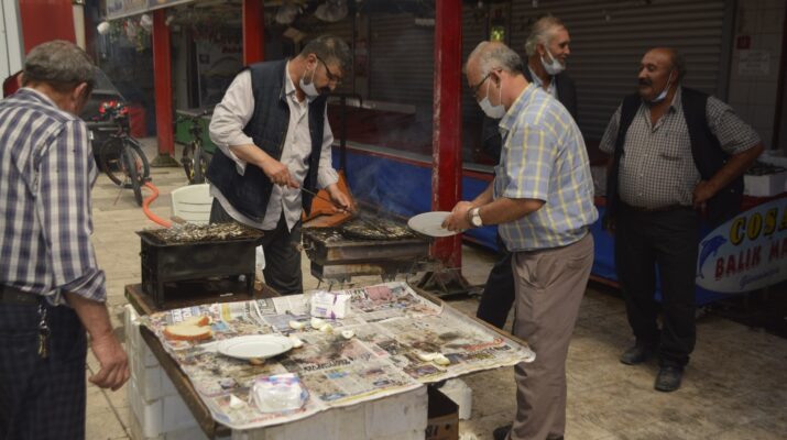 Kütahya’nın Tavşanlı ilçesindeki balık pazarında balık sezonu mangal keyfi ile başladı.