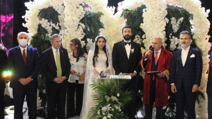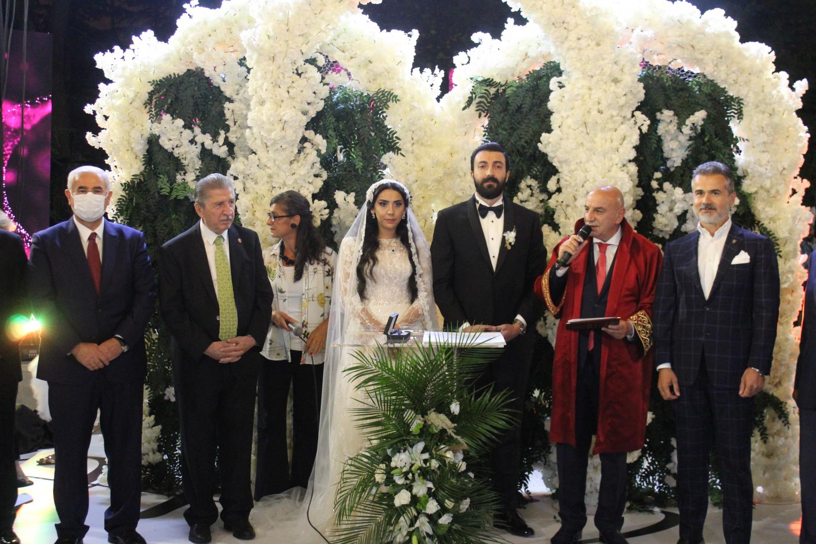 Merve ve Emin çifti, nikah töreninde Keçiören Belediye Başkanı Turgut Altınok’un sorusuna “evet” diyerek dünyaevine girdi. Çiftin evliliğine, düğüne davet edilmiş 25’i aşkın siyasetçi tek tek şahit oldu. Altınok tarafından nikahları kıyılan çifte aile cüzdanını eski Meclis Başkanı Köksal Toptan takdim etti.