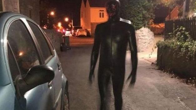 Sürücü, “Highclere yakınlarındaki korulukta, A34 kavşağı yakınlarındaki cepte, 5 çubuklu kapıda duruyordu, siyah lateks maske takmıştı ve çıplaktı. Korku filmindeymiş gibi öylece durup trafiği seyrediyordu, sonra biz dönüp yanından geçtiğimizde koşarak uzaklaşıyordu.” dedi.