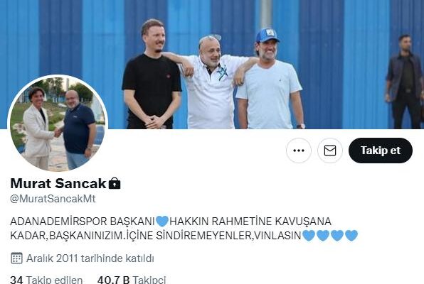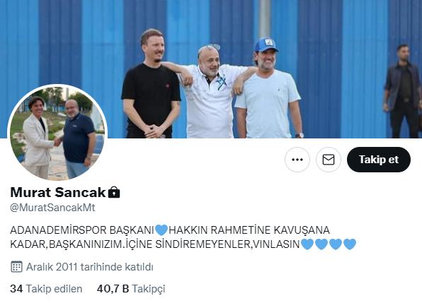 Alınan ağır yenilginin ardından eleştiri oklarını üzerine çeken Adana Demirspor Başkanı Murat Sancak, sosyal medya hesabının (Kişisel bilgilerin yer aldığı) bio kısmına, “Hakkın rahmetine kavuşana kadar başkanınızım. İçine sindiremeyenler vınlasın” yazarak tepkilere tepki gösterdi.
