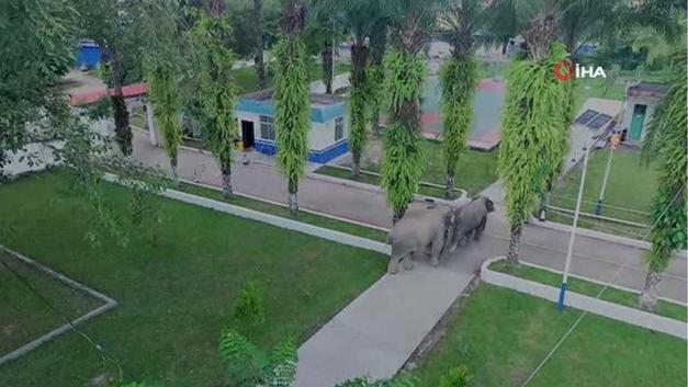 İki saati aşkın bir süre bölgede kalan filler, daha sonra yavaş yavaş doğal yaşam alanlarına döndü.