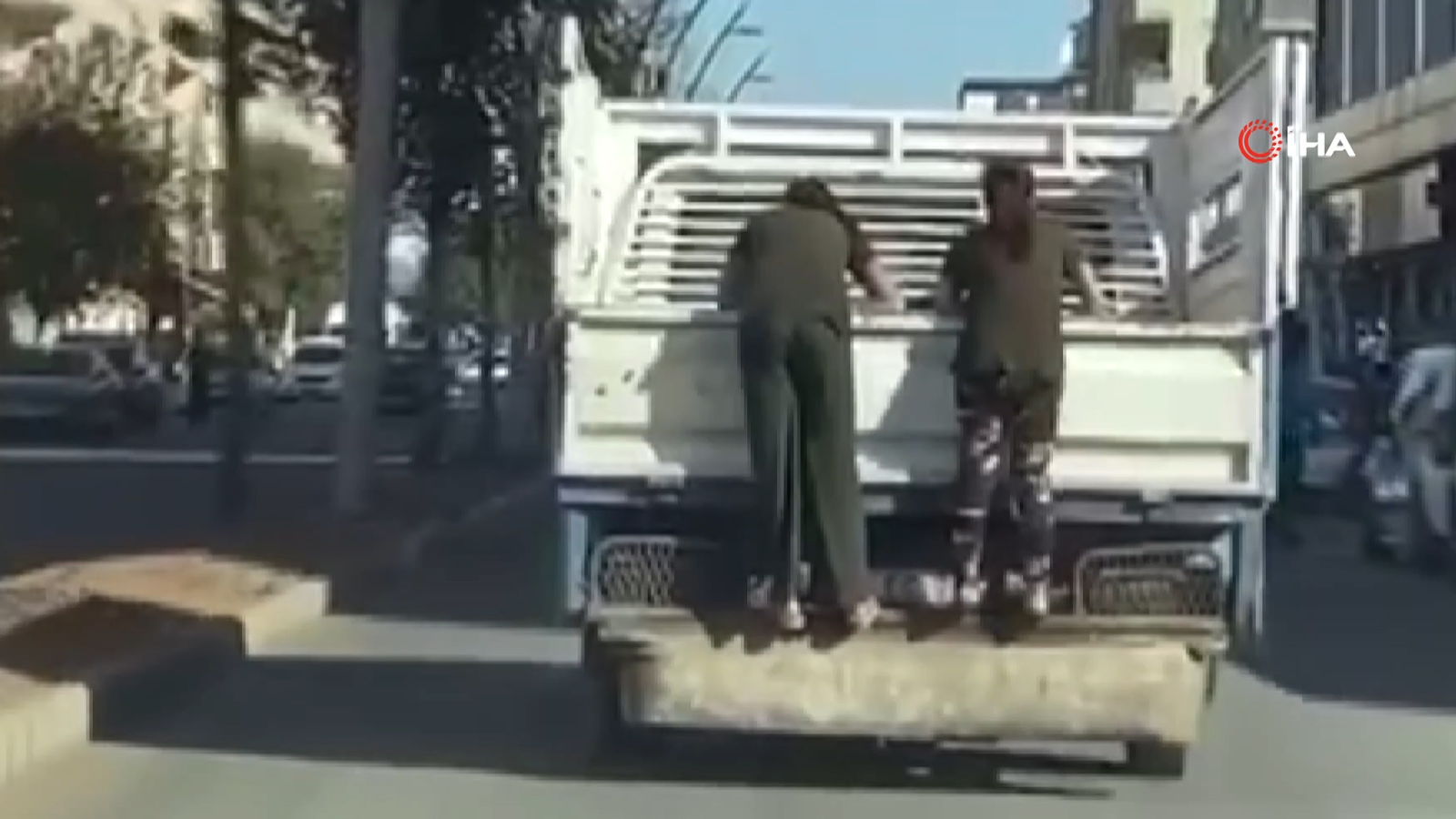 Olay, Batman’ın en işlek caddesi olan Diyarbakır Caddesi’nde meydana geldi. Kamyonetin arkasında seyreden bir sürücünün cep telefonu kamerasına yansıyan görüntüde 2 çocuğun kamyonetin arkasına asıldığı görüldü. Çocukların tehlikeli hareketleri yürekleri ağızlara getirirken, çocuklar araçla birlikte bir süre sonra gözden kayboldu.