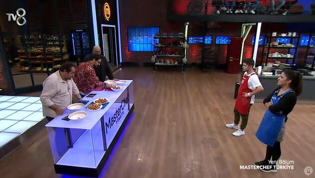 MasterChef Türkiye 2021’de 5. haftanın mavi takım kaptanı Azize, kırmızı takım kaptanı ise Hamza oldu. Azize ve Hamza kaptanlık oyunu için mutfağa girdi.