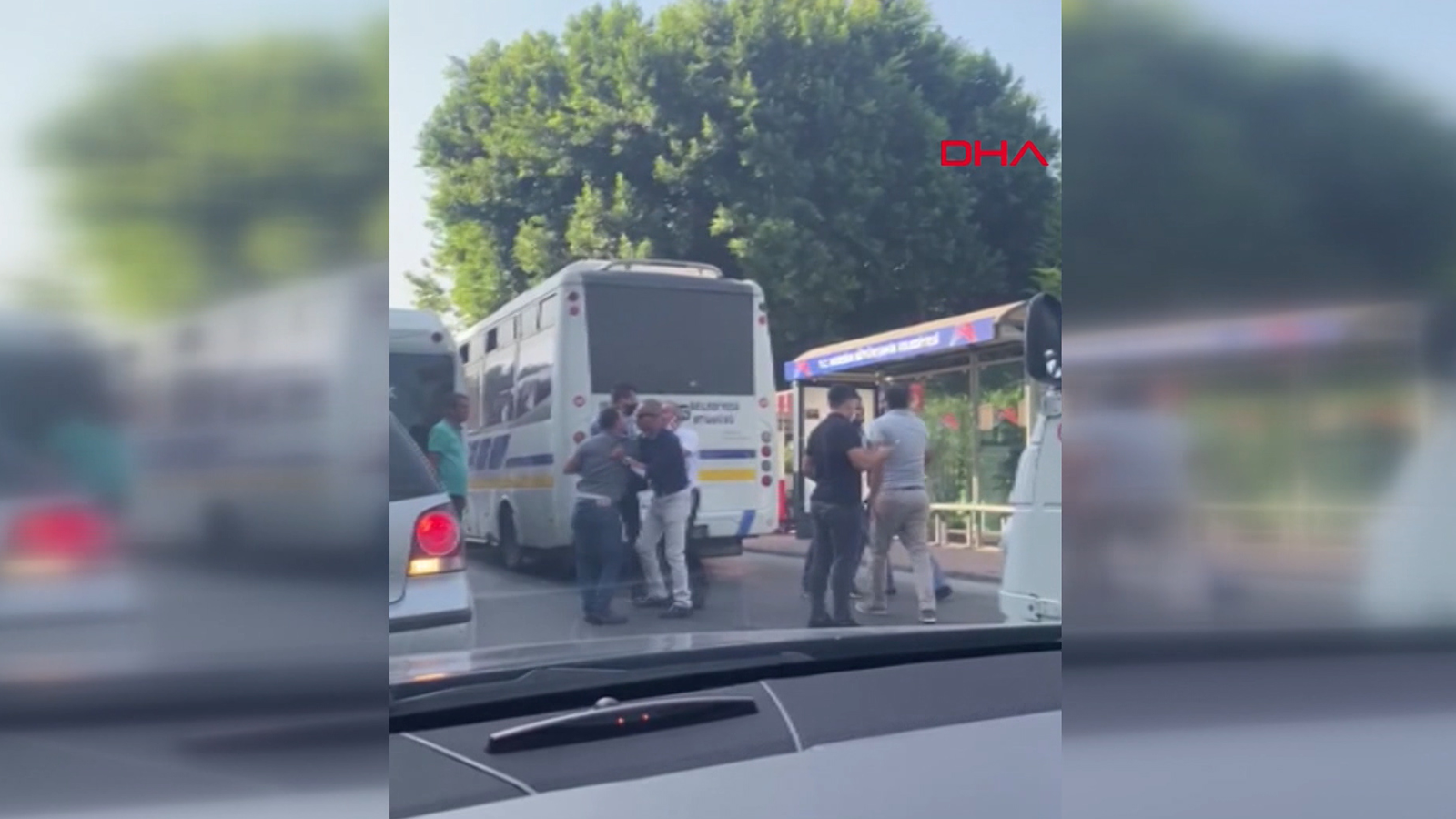 Mersin’in Tarsus ilçesinde özel halk otobüsü ile minibüs şoförü güzergah üzerinde bulunan durak önünde bekleyen yolcuları almak için birbiriyle yarıştı. Çıkan tartışma daha sonra kavgaya dönüştü. O anlar diğer sürücülerin cep telefonu kamerasıyla görüntülendi. Kavga eden şoförleri vatandaşlar araya girerek güçlükle ayırdı.