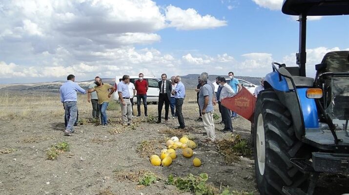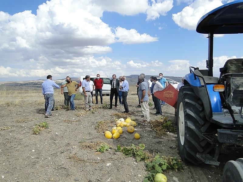 Tarım ve Orman İl Müdürlüğü tarafından hazırlanan “Nadas Alanlarında Çerezlik Kabak Yetiştiriciliği Projesi” kapsamında ekilen kabakların hasadı için yetkililer ve üreticiler tarlada bir araya geldi.