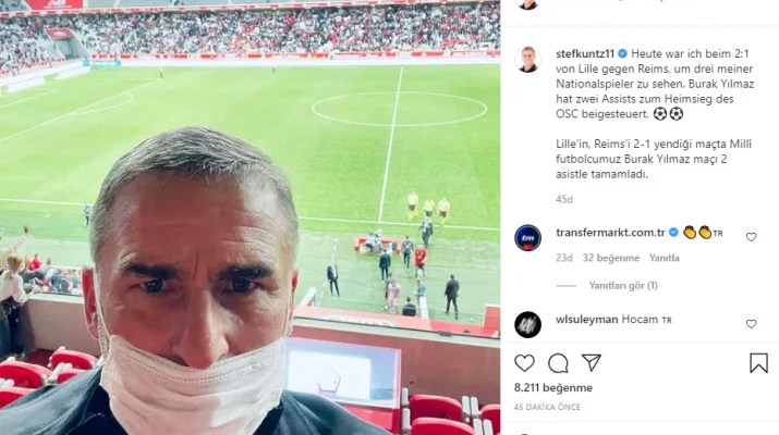 Lille’de mücadele eden milli oyuncular Burak Yılmaz, Yusuf Yazıcı ve Zeki Çelik’i izlemeye gelen Alman çalıştırıcı, sosyal medya hesabından yaptığı fotoğraflı paylaşıma, “Lille’in Reims’i 2-1 yendiği maçta milli futbolcumuz Burak Yılmaz, maçı 2 asistle tamamladı” notunu düştü.