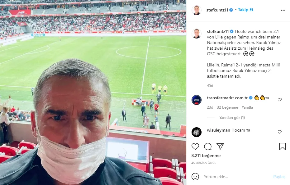 Türkiye A Milli Futbol Takımı’nın yeni teknik direktörü Stefan Kuntz, Lille-Reims mücadelesini statta izledi.