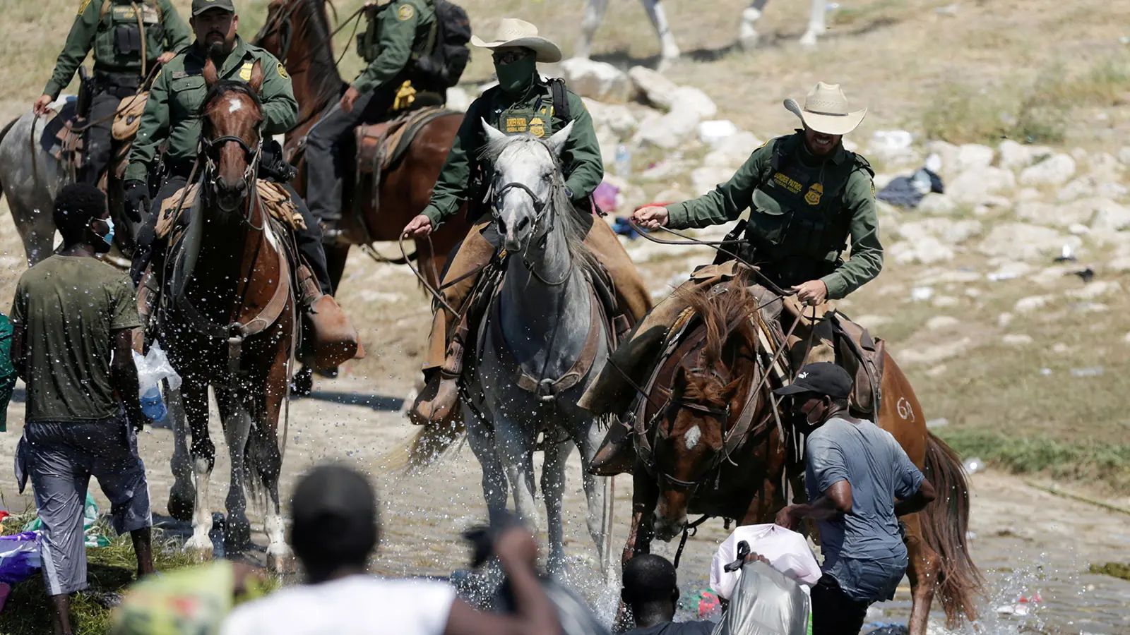 Rio Grande nehrini ABD‘ye geçmek için kullanan Haitili göçmenlere, memurların kırbaç savurdukları görülüyor. Diğer memurların da göçmenleri kollarından ve yakalarından şiddetle ittikleri göze çarpıyor. Bu göçmenlerin çoğunun Teksas, Del Rio’da bir köprünün altındaki derme çatma bir çadır kentte kamp kurduğu bildiriliyor.