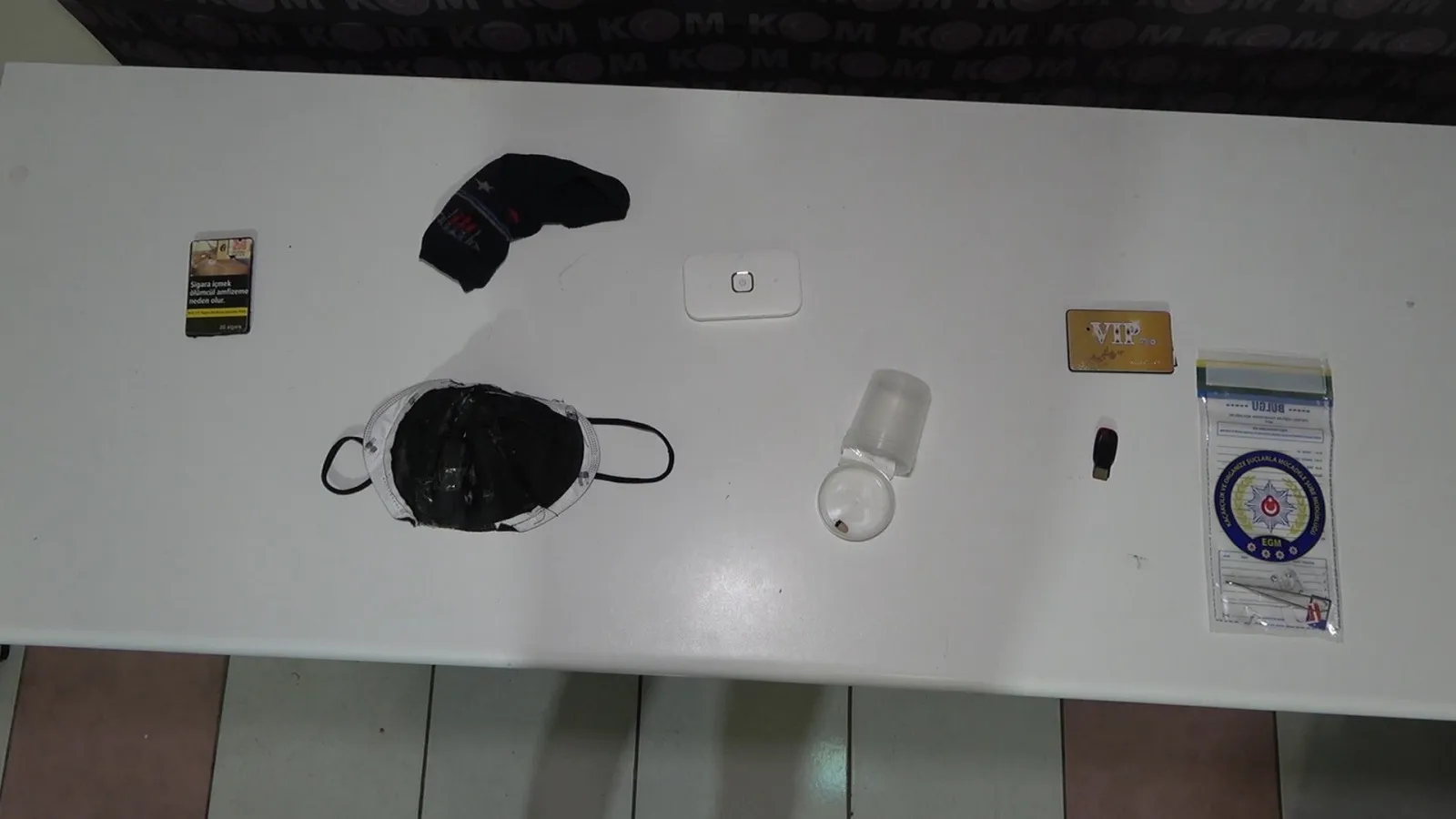 Kaçakçılık ve Organize Suçlarla Mücadele (KOM) ekiplerince gözaltına alınan iki şahsın da kulak içine gizlediği “böcek” adı verilen özel dinleme cihazı, maske içerisine gizlenmiş kamera, taşınabilir wifi cihazı, SIM kart olan alıcı, kulaklık pili, 4 SIM kart muhafazası, cımbız, flash bellek ve cep telefonu ele geçirildi.