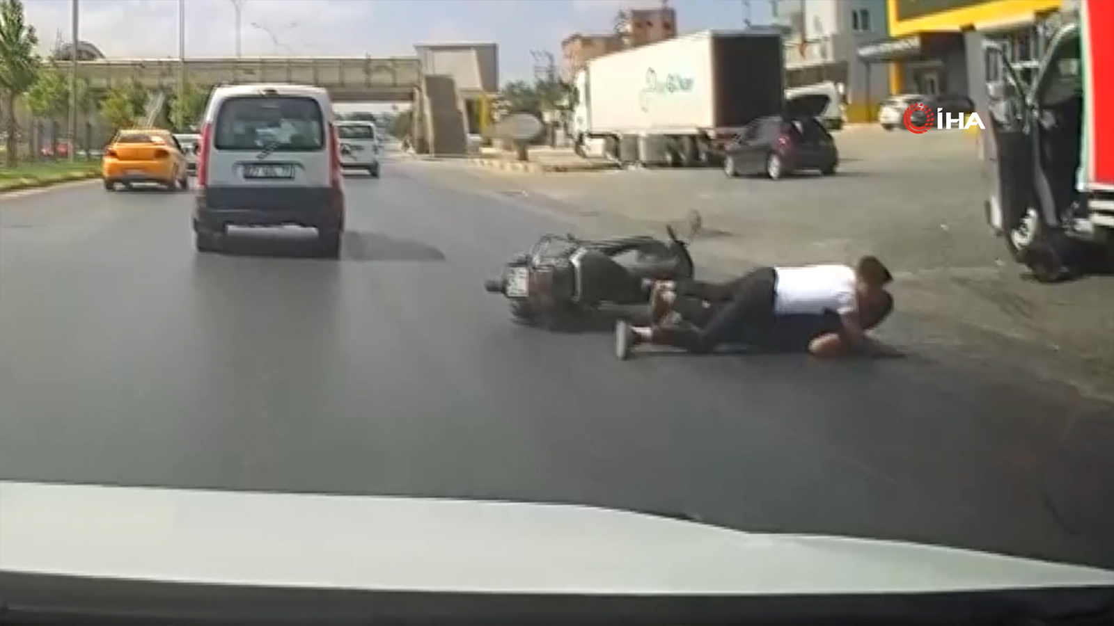 Gaziantep’te seyir halindeki motosiklet, trafik yoğunluğunun olduğu anayolda dökülmüş olan yağ nedeniyle kayarak devrildi. Devrilen motosikletin üzerindeki iki kişinin ölümden kıl payı kurtulduğu anlar ise başka bir aracın kamerasına saniye saniye yansıdı. Hafif yaralı iki kişi, olay yerine gelen sağlık ekipleri tarafından yapılan muayenelerinin ardından tedbir amaçlı hastaneye kaldırıldı.