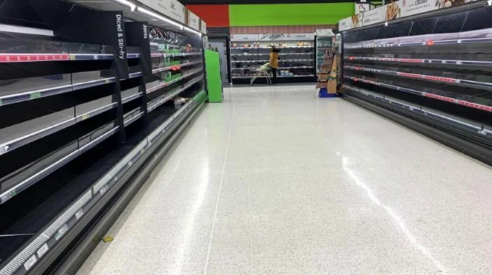 Başkent Londra’daki çeşitli marketlerde özellikle sebze ve meyve ürünleri ile hazır suların satışa sunulduğu rafların boş olduğu görüldü.