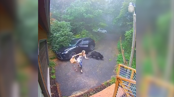 Evinin önündeki arabasına eşyalarını yerleştirmek için kapısını açık bırakan kadın geri döndüğünde ön koltukta oturan ayıyı görünce paniğe kapıldı. Ne yapacağını şaşıran kadın önce kapıyı ayının üzerine örtmeye çalıştı. Fakat kadına direnen ayı kapıyı örtmesine fırsat vermedi. Ayı arabadan fırlayınca korkan kadın çığlık atarak evine doğru koştu. Kadın ayıdan kıl payı kurtulurken, o anlar evin güvenlik kamerasına saniye saniye yansıdı.