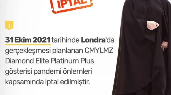 “Üzüldüğüm bir haber. 31 Ekim 2021 tarihinde Londra’da gerçekleşmesi planlanan CMYLMZ Diamond Elite Platinum Plus gösterisi pandemi önlemleri kapsamında iptal edilmiştir.