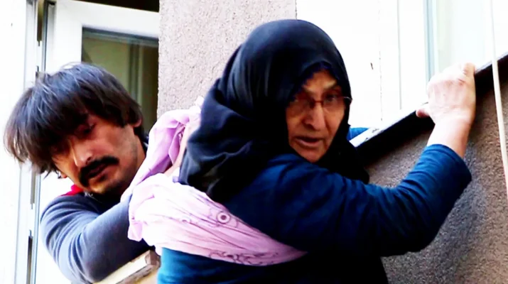 Erzurum Aziziye’de pencereden atlamak isteyen annesini son anda böyle yakaladı