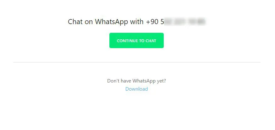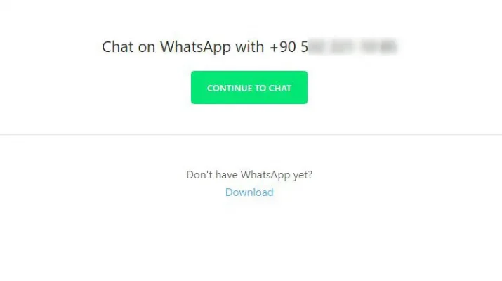 3. Adım: Telefonunuzda WhatsApp sayfasına yönlendirileceksiniz. Telefon numaranızı üstte ve yanında da “Sohbete Devam Et” yazan bir kutu göreceksiniz. O kutuyu tıklayın.