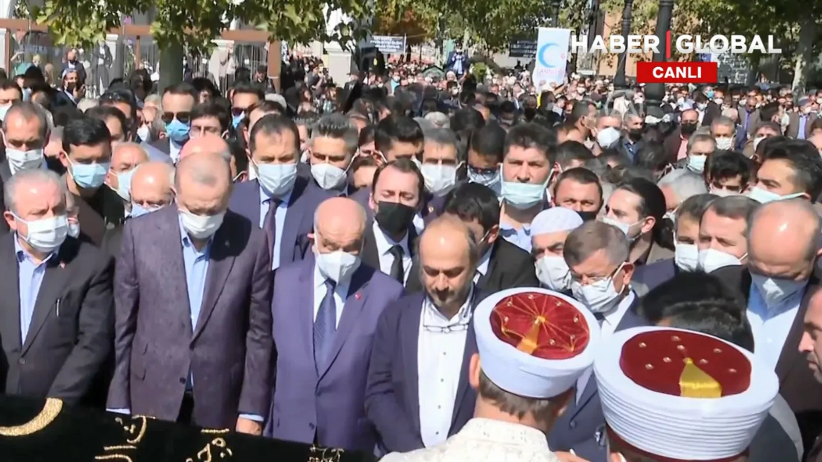 Cenaze törenine, Cumhurbaşkanı Recep Tayyip Erdoğan, TBMM Başkanı Mustafa Şentop, CHP Genel Başkanı Kemal Kılıçdaroğlu, MHP lideri Devlet Bahçeli, Saadet Partisi Genel Başkanı Temel Karamollaoğlu, Gelecek Partisi lideri Ahmet Davutoğlu, DEVA Partisi lideri Ali Babacan ve çok sayıda siyasi katıldı.