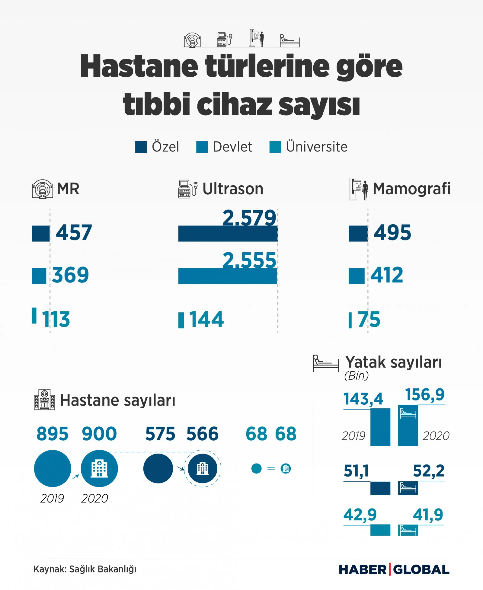 Cihaz eksikliği sorunu olduğunu düşünmediğini söyleyen Saip, “Dünyanın en çok MR cihazı bizim ülkemizde. Sistem özel hastaneye teşvik ediyor” diyor.