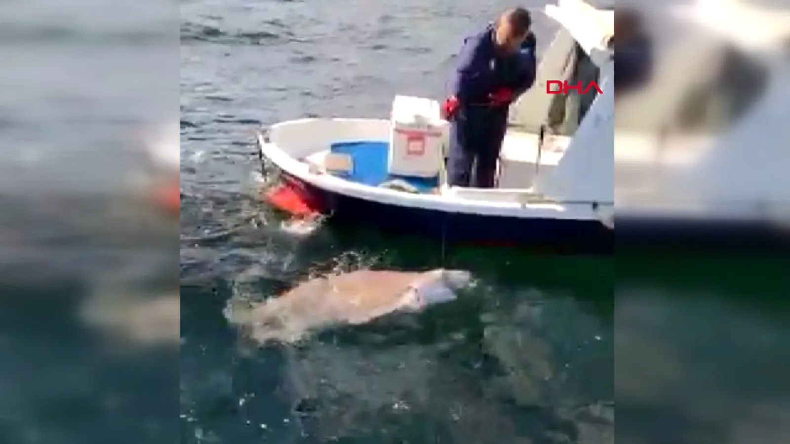 Çanakkale’de amatör balıkçılık yapan Hakan Karakaş, pazar günü sinarit avlamak için 6 metrelik teknesiyle boğaza açıldı. Karakaş, ucuna kalamar taktığı oltasını denize bıraktı. Bir süre sonra oltasına büyük bir ağırlığın takıldığını fark eden Karakaş, uzun çabalar sonucu tekneye boz camgöz köpek balığı çıkardı. Karakaş’ın oltasına takılan köpek balığı, bölgedeki diğer balıkçıları da şaşkına çevirdi. Karakaş’ın köpek balığını tekneye çıkarmaya çalıştığı anlar ise arkadaşının cep telefonu kamerasına yansıdı. Karakaş, daha sonra köpek balığını oltadan kurtararak denize bıraktı.