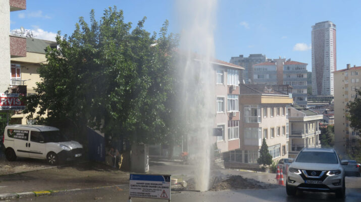 Ataşehir’de boru patladı, sular metrelerce yükseldi