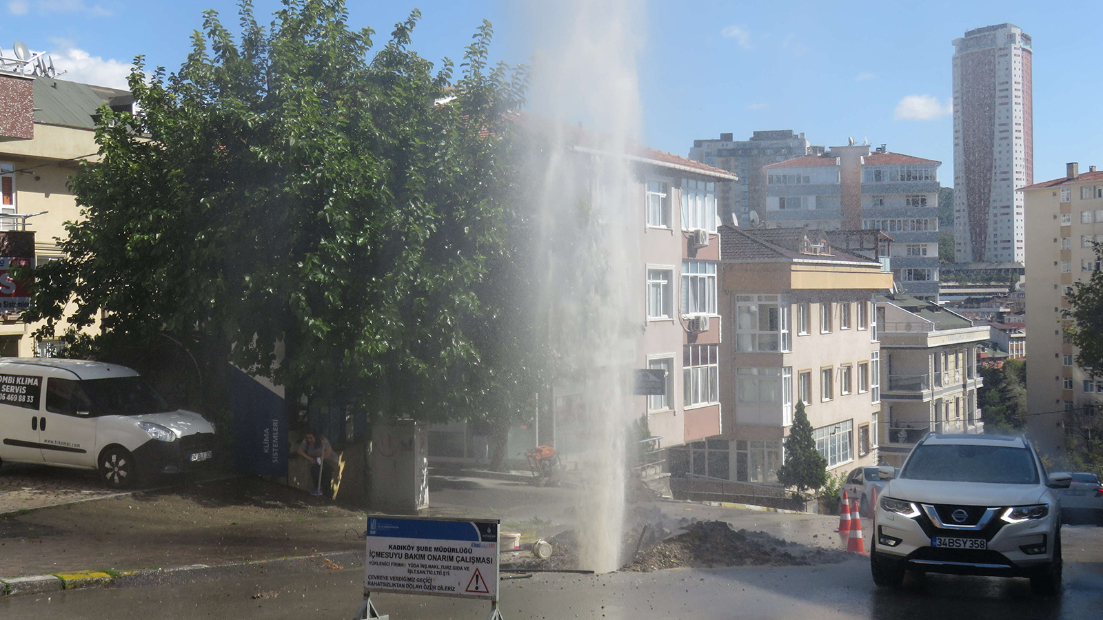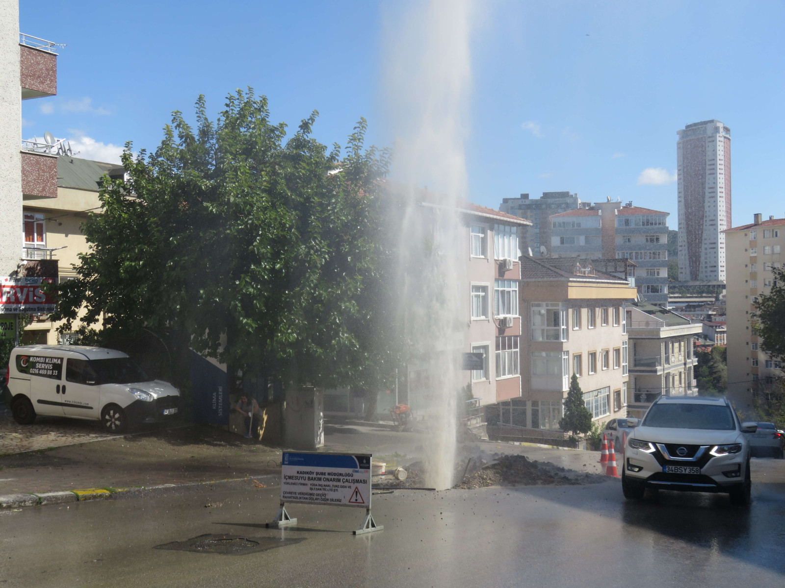 Olay saat 12.30 sıralarında İçerenköy Mahallesi Başıbüyük Yolu Caddesi’nde meydana geldi. İSKİ ekipleri çalışma yaptığı sırada, iş makinesi su borusunu patlattı. Patlamanın etkisiyle basınçlı su metrelerce yükseldi. Sokakta yürüyenler ıslanmamak için büyük çaba sarf etti. Ekipler suyu kapatmak için uzun süre uğraştı. Önce bir işçi suyu kapatmaya çalıştı, fakat tazyikli su nedeniyle başarılı olamadı. Daha sonra iş makinesi kepçe ile suyun basıncını kapatmaya çalıştı. Yaklaşık 1 buçuk saat süren çalışmaların ardından su kesildi.