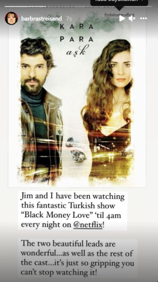 Son olarak dünyaca ünlü Amerikalı Oscar ödüllü şarkıcı, oyuncu, yönetmen, senarist, prodüktör Barbra Streisand, 1.4 milyon takipçisi bulunan Instagram hesabından ‘Kara Para Aşk’ dizisinden paylaşım yaparak diziyle ilgili duygularını takipçileriyle paylaştı.