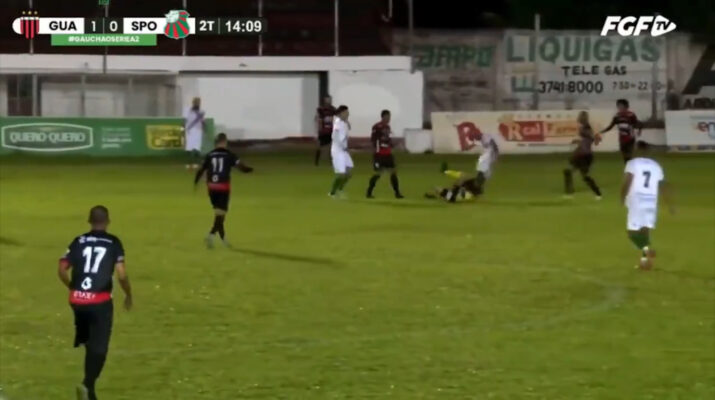 Brezilya 2. Ligi’nde dün gece karşılaşan Sao Paulo – Guarani RS karşılaşmasında korku dolu anlar yaşandı. Karşılaşmanın 15. dakikasında hakem Rodrigo Crivellaro bir pozisyonda faul kararı verdi. Hakemin kararına sinirlenen Sao Paulo’nun 30 yaşındaki oyuncusu William Ribeiro ilk olarak hakeme çelme taktı. Daha sonra yere düşen hakemin kafasına sert bir şekilde tekme atan Ribeiro diğer futbolcular tarafından uzaklaştırıldı. Crivellaro’ya ilk müdahale saha içinde yapılırken, darbe alan hakemin bilincinin kapalı olduğu görüldü.