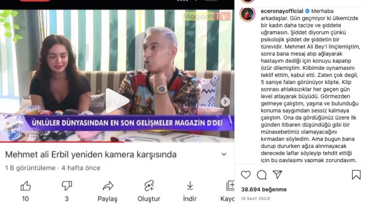 Klibimde oynamasını teklif ettim, kabul etti. Zaten çok değil, 5 saniye falan görünüyor klipte. Klip sonrası ahlaksızlıklar her geçen gün level atlayarak büyüdü. Görmezden gelmeye çalıştım, yaşına ve bulunduğu konuma saygımdan sessiz kalmaya çalıştım” ifadelerini kullandı.