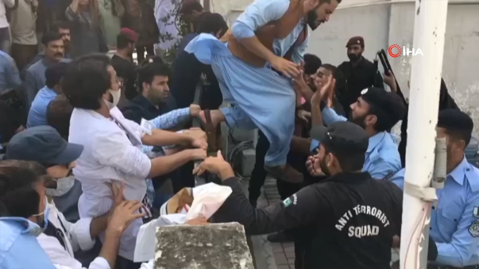 Pakistan’da tıp öğrencileri ve sağlık çalışanları ulusal lisans sınavında (NLE) yapılan düzenlemeye karşı sokağa döküldü. Ülkenin dört bir yanından yola çıkan yüzlerce kişi, sabah saatlerinde başkent İslamabad’daki Pakistan Tıp Komisyonu (PMC) önünde toplandı. Binaya girmek isteyen protestocular polisin coplu müdahalesiyle karşılaştı. Ortalık savaş alanına dönerken, protestocular ise polise ve PMC binasına taş atarak karşılık verdi. Tansiyonun giderek arttığı bölgede çıkan olayların ardından çok sayıda kişi gözaltına alındı. PMC karşıtı ifadelerin yer aldığı pankartları açan protestocular bina önünde oturma eylemi başlattı.