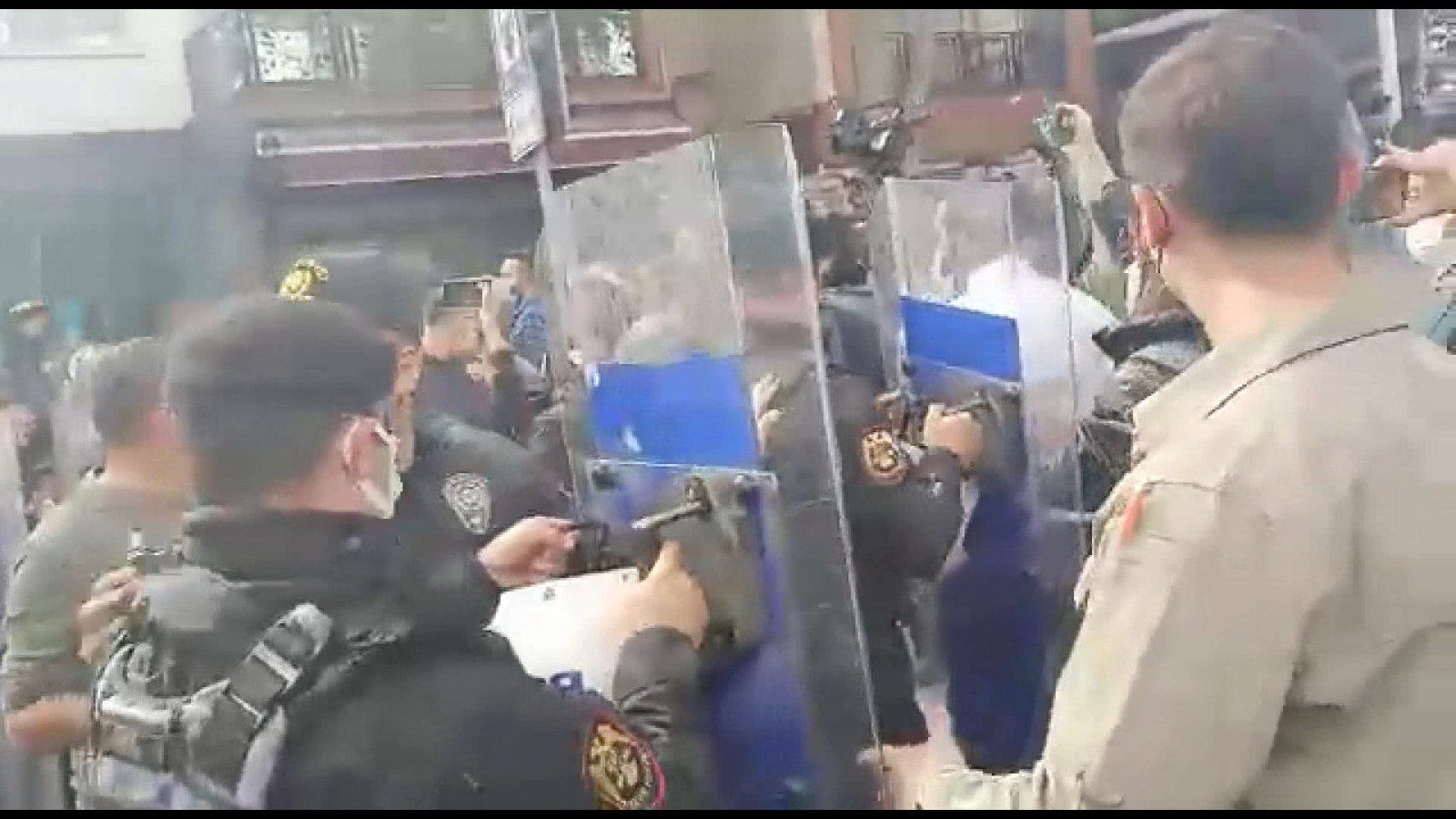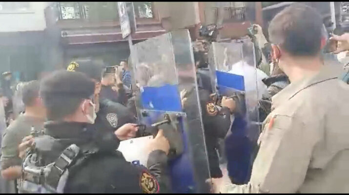 Yoğun güvenlik önleminin alındığı meydanda eylem yapmak isteyen öğrencilere müdahalede bulunan polis birçok göstericiyi gözaltına aldı.