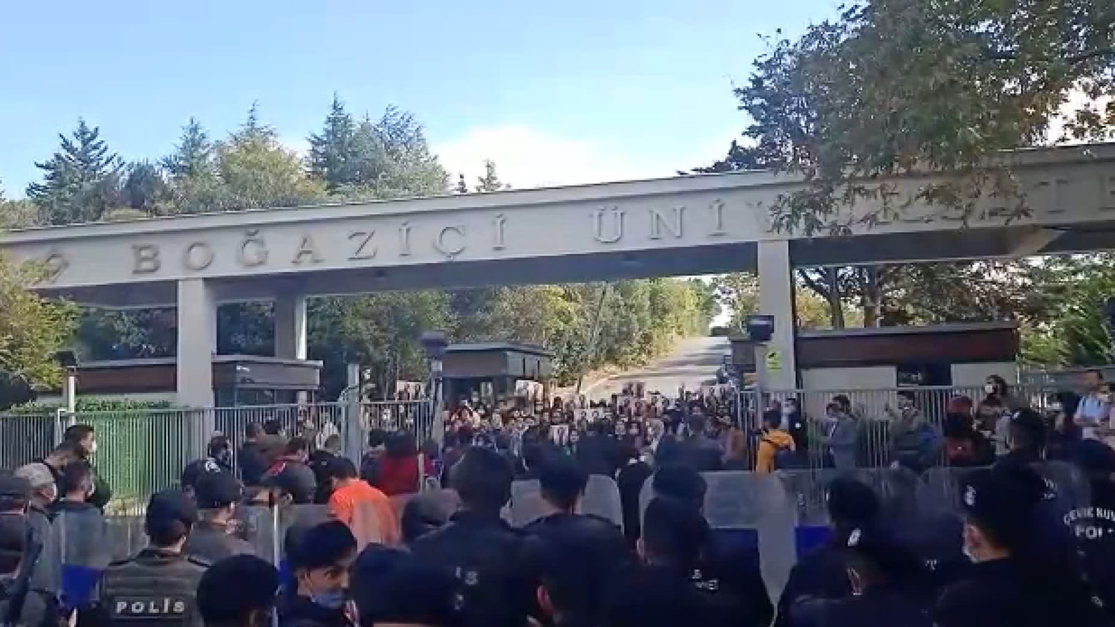 Tutuklamaları protesto etmek isteyen bir grup öğrenci bugün Boğaziçi Üniversitesi Güney Kampüs önünde izinsiz gösteri yapmak istedi.