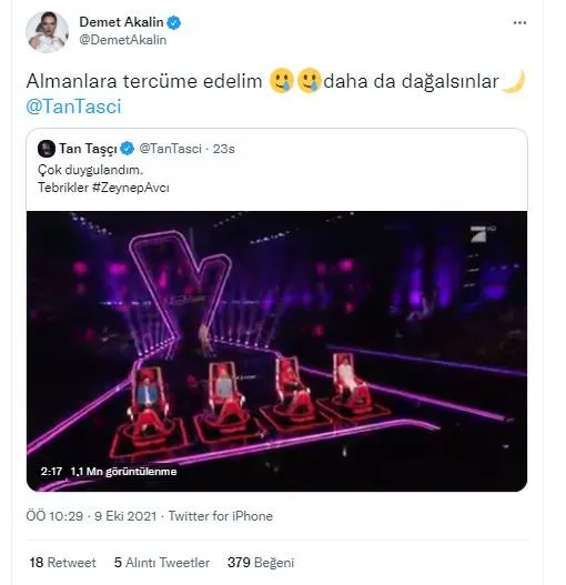 Şarkıcı Demet Akalın ise dikkat çeken bir yorumda bulundu. Tan Taşçı’nın gönderisini alıntılayan Akalın, paylaşımında, “Almanlara tercüme edelim, daha da dağılsınlar” ifadelerini kullandı.