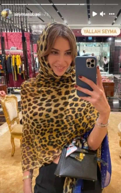 Dubai turundan bol bol paylaşım yapan Şeyma Subaşı, leopar desenli bir şalla başını örttüğü fotoğrafını Instagram hesabından paylaştı.