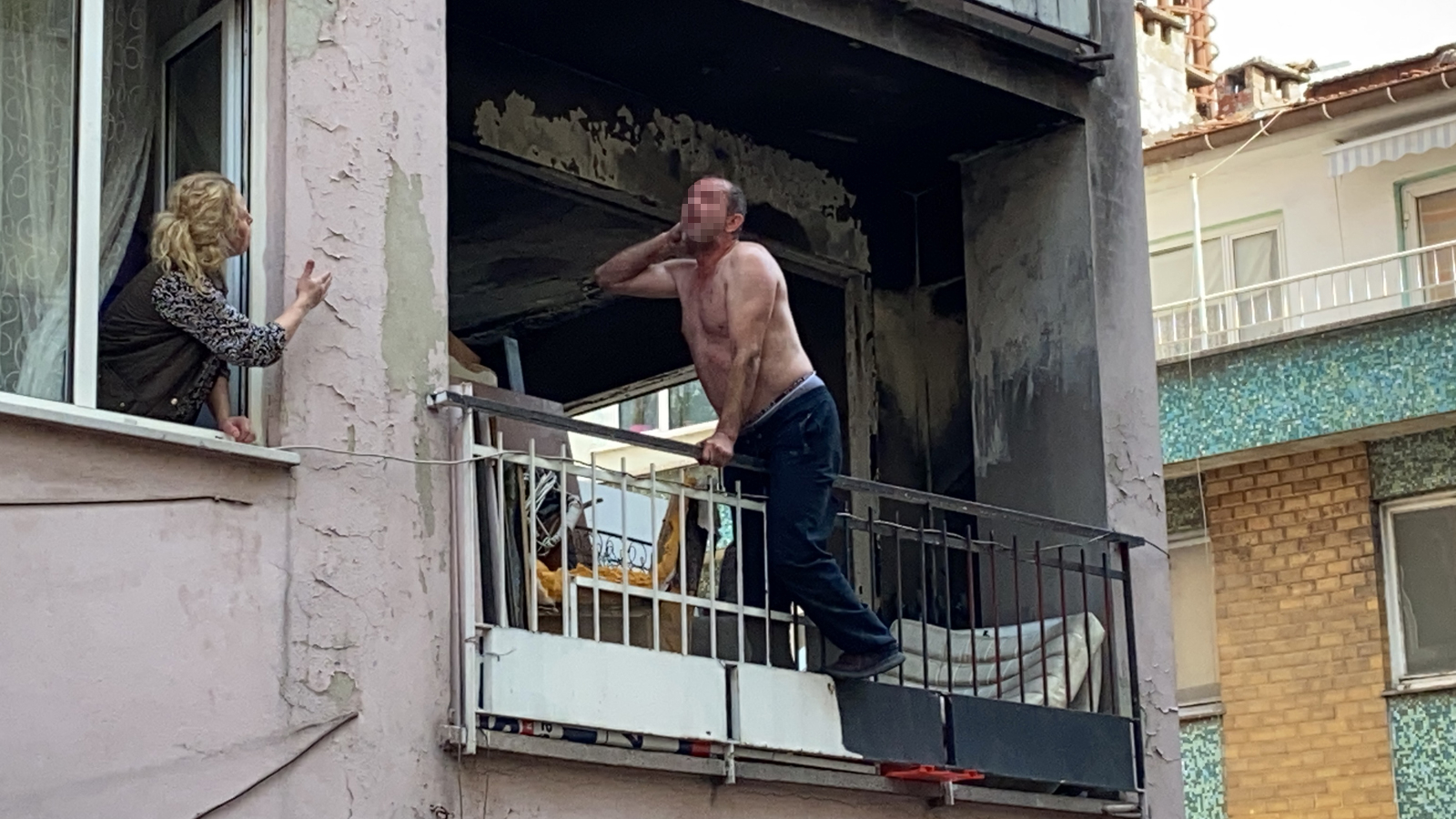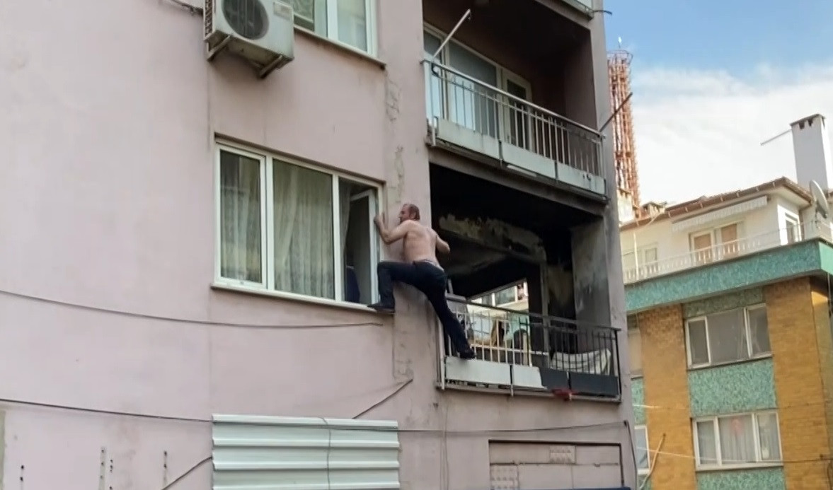 Durumu fark eden Murat T., bu kez balkon korkuluklarına asılarak atlamaya çalıştı. Son anda vazgeçen Murat T., açık pencereden eve girdi. Bu sırada kapıyı kıran polis, Murat T.’yi etkisiz hale getirdi.