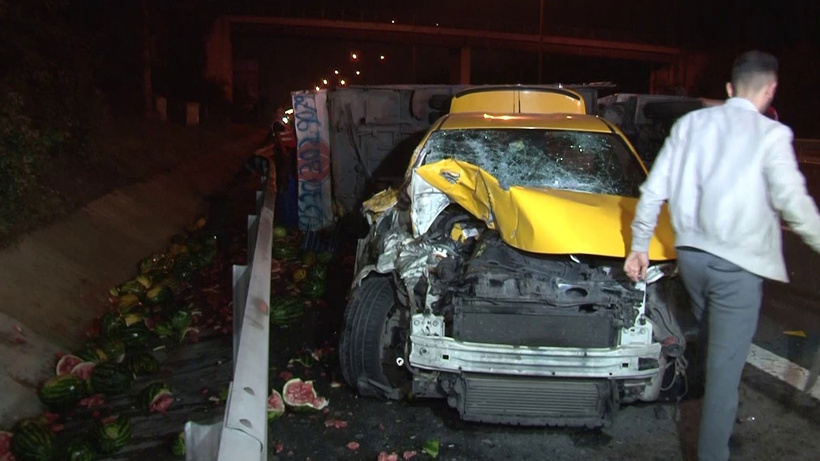 Kaza, TEM otoyolu Ankara istikametinde 02.00 sıralarında meydana geldi. Edinilen bilgiye göre, TEM otoyolunda seyir halinde olan 34 TJE 47 plakalı Egea marka ticari taksi otoyolda ilerlerken kontrolünü kaybederek karpuz ve kavun yüklü 34 DNS 719 plakalı kamyonete arkadan çarptı. Çarpmanın etkisiyle karpuz yüklü kamyonet devrilirken içerisinde bulunan kavun ve karpuzlar otoyola saçıldı. Kazada 4 kişi hafif yaralandı. Vatandaşların ihbarı ile olay yerine polis, itfaiye ve ilk yardım ekipleri sevk edildi. İlk yardım ekiplerinin yaralılara olay yerinde ilk müdahalesinin ardından yaralılar hastaneye sevk edildi. Devrilen kamyonet vinç yardımıyla kaldırıldı.