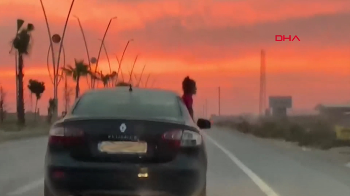 Silopi-Cizre ilçeleri arasındaki İpek Yolu’nda, dün akşam saatlerinde seyir halindeki bir otomobilin içindeki kız çocuğu, sağ arka camı indirerek dışarı sarktı. Sarkan çocuğu fark eden diğer araçlardaki sürücüler, otomobilin sürücüsünü korna çalıp selektör yaparak uyardı. Çevredekileri tedirgin eden çocuk, kilometreler sonra aracın içine girdi. Faciaya davetiye çıkaran görüntüler, bir başka araçtaki yolcu tarafından cep telefonuyla kaydedildi.