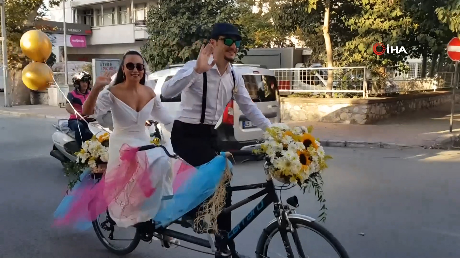 Tire’de yaşayan bisiklet tutkunu Çiğdem Kavasoğlu ile Erdem Can, evlenmeye karar verdi. En özel günlerini unutulmaz kılmayı planlayan çift, nikah salonuna otomobil yerine bisikletle gitti. Genç çifte arkadaşları da bisikletleriyle eşlik edince ortaya renkli görüntüler çıktı. Tandem bisikletle yola çıkan genç çift onlarca bisikletli arkadaşıyla birlikte nikah salonuna kadar pedal çevirdi. Bisikletli gelin konvoyunu görenler ise şaşkınlıklarını gizleyemedi.