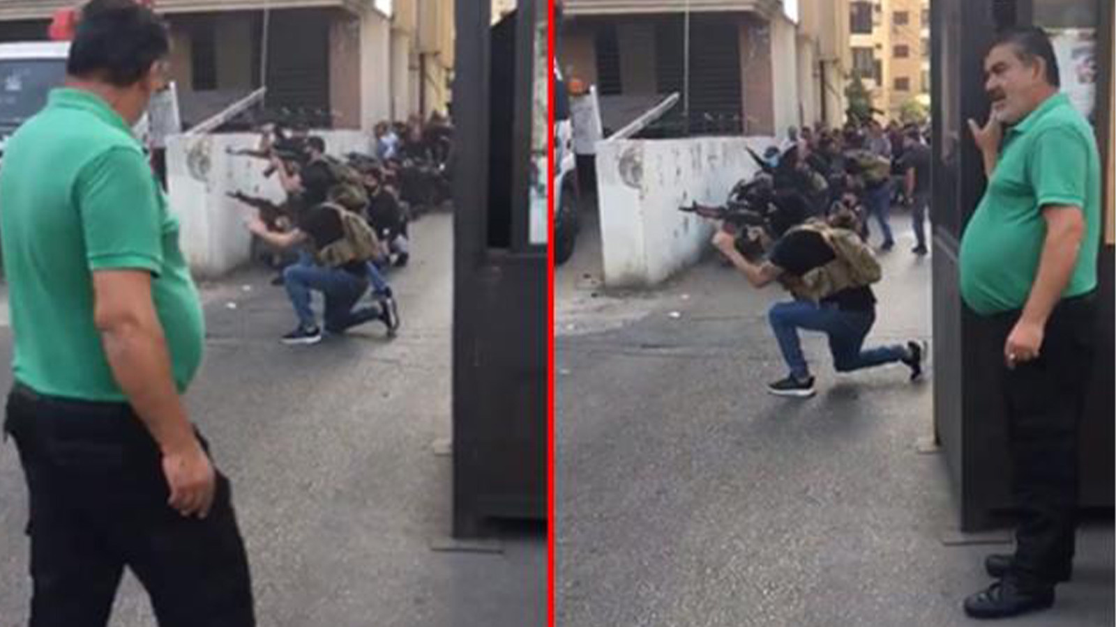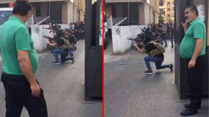 Sosyal medyada yayınlanan görüntülerde bir vatandaşın çatışmalar sürerken rahat tavırları dikkat çekti. Kısa zamanda viral olan görüntülerdeki adamın kurşunların havada uçuştuğu anlarda elini kolunu sallayarak yürüdüğü ve kenarda durarak çatışmayı izlediği görülüyor.