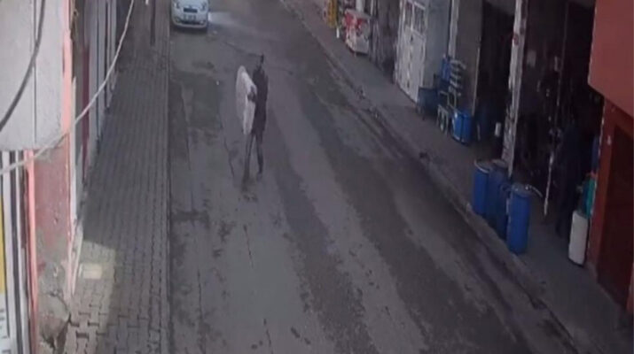 Etrafı kontrol etmesinin ardından aldığı çuvalla olay yerinden hızlıca uzaklaşan hırsızın görüntüleri, güvenlik kameraları tarafından kaydedildi.