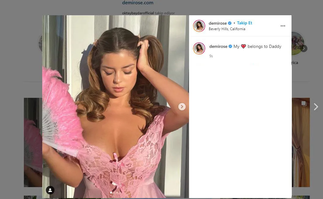 Instagram’da 19 milyon takipçisi olan Rose’a fotoğraflarına “My heart belongs to Daddy” (Kalbim babama ait) notunu düştü.