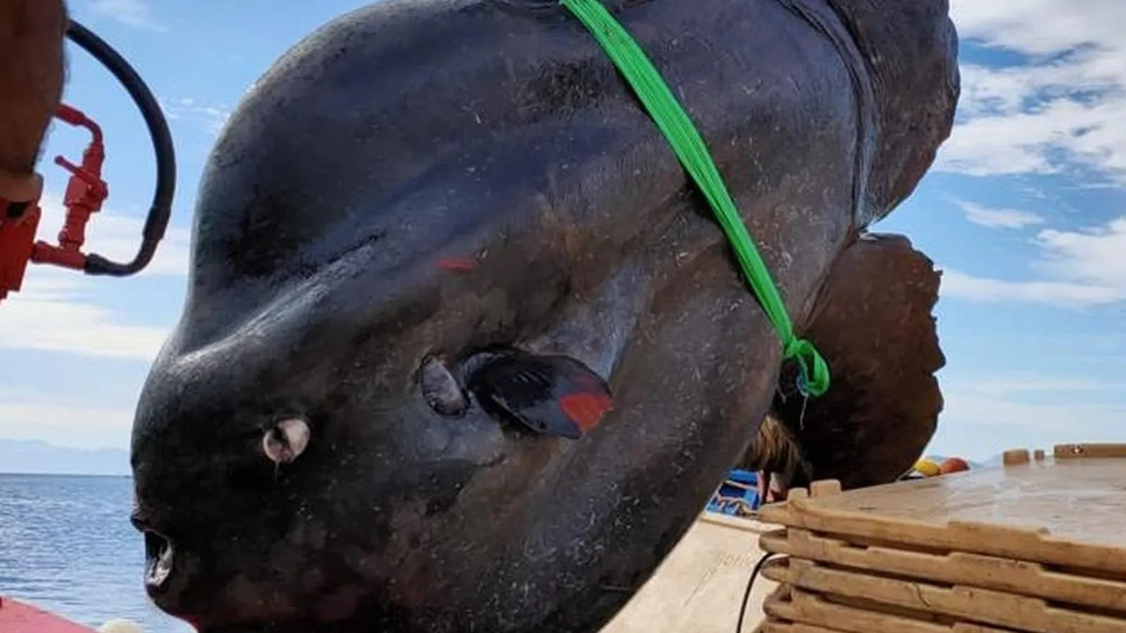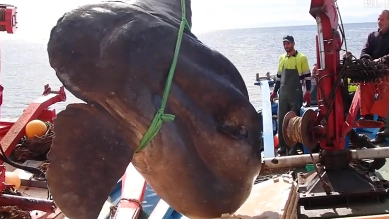 2 ton ağırlığındaki güneş balığı, vinçle güçlükle çekildi.