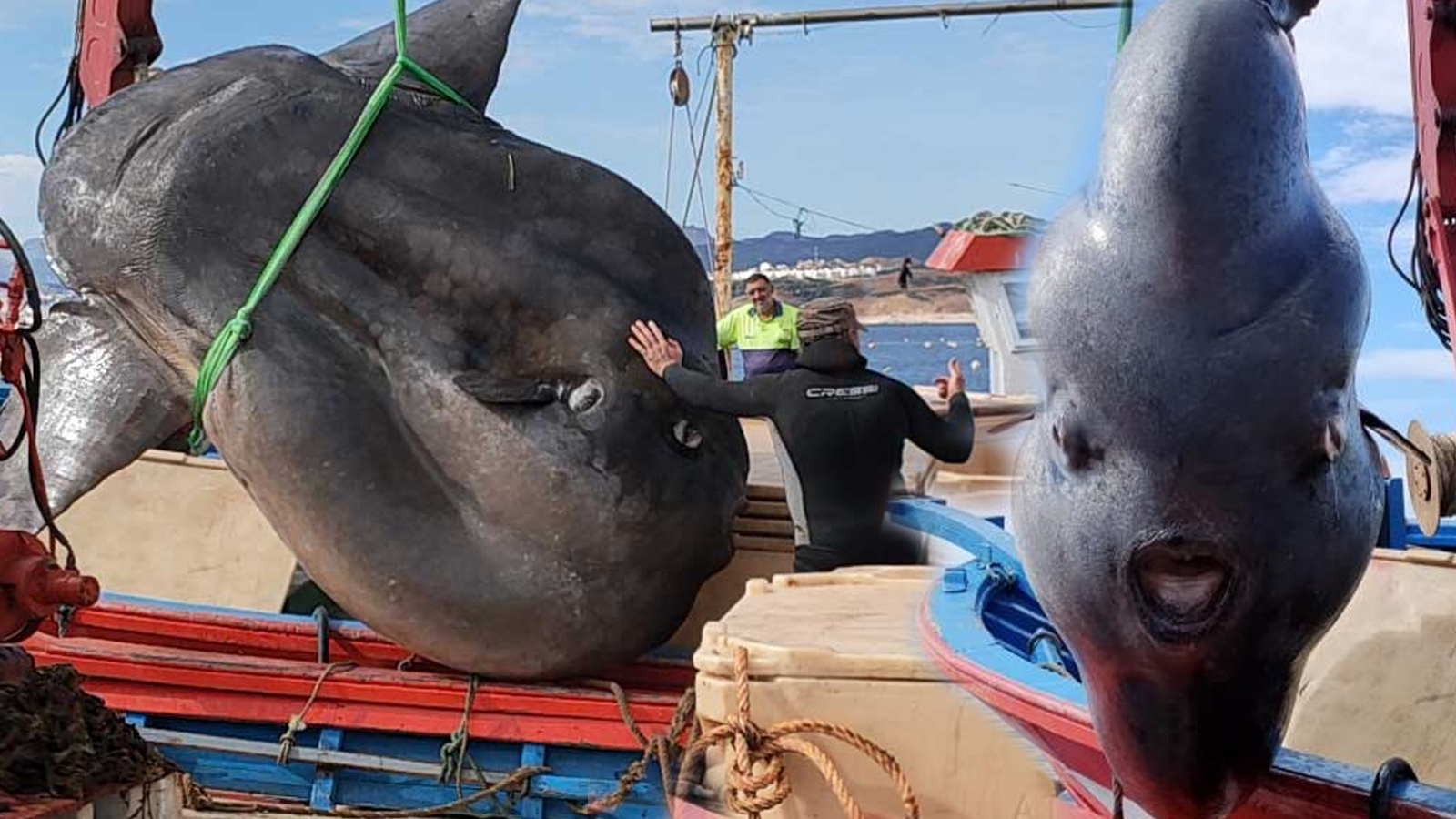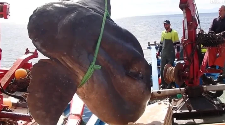 İspanya’nın Ceutaaçıklarında, balıkçı teknesinin ağlarına dev güneş balığı takıldı. Koyu gri teni, büyük gövdesi ve dev kafası, taraklı sırt yüzgeciyle dikkat çekti.