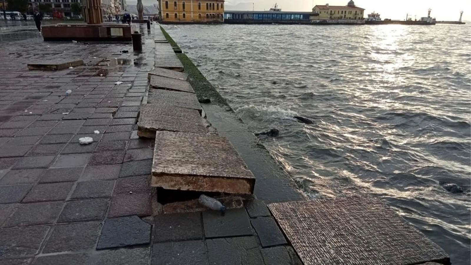 Fırtına sebebiyle deniz seviyesini yükselirken, oluşan dalgalar sahil bandından bulunan yüzlerce kiloluk beton blokları yerinden kaldırdı. Cumhuriyet Meydanı’nda bazı ağaçların dalları koparken, İzmir Büyükşehir Belediyesi ekipleri kent genelinde çalışmalarını sürdürdü.