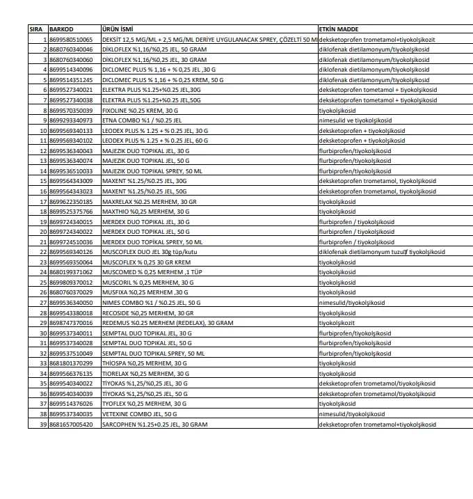 TİTCK’ten yapılan açıklamada, “Kas ve eklem ağrıları için kullanılan sprey ve kremlerin yer aldığı aralarında Majezik’in de bulunduğu 39 topikal ürünün piyasadan toplatılmasına karar verdi” denildi.
