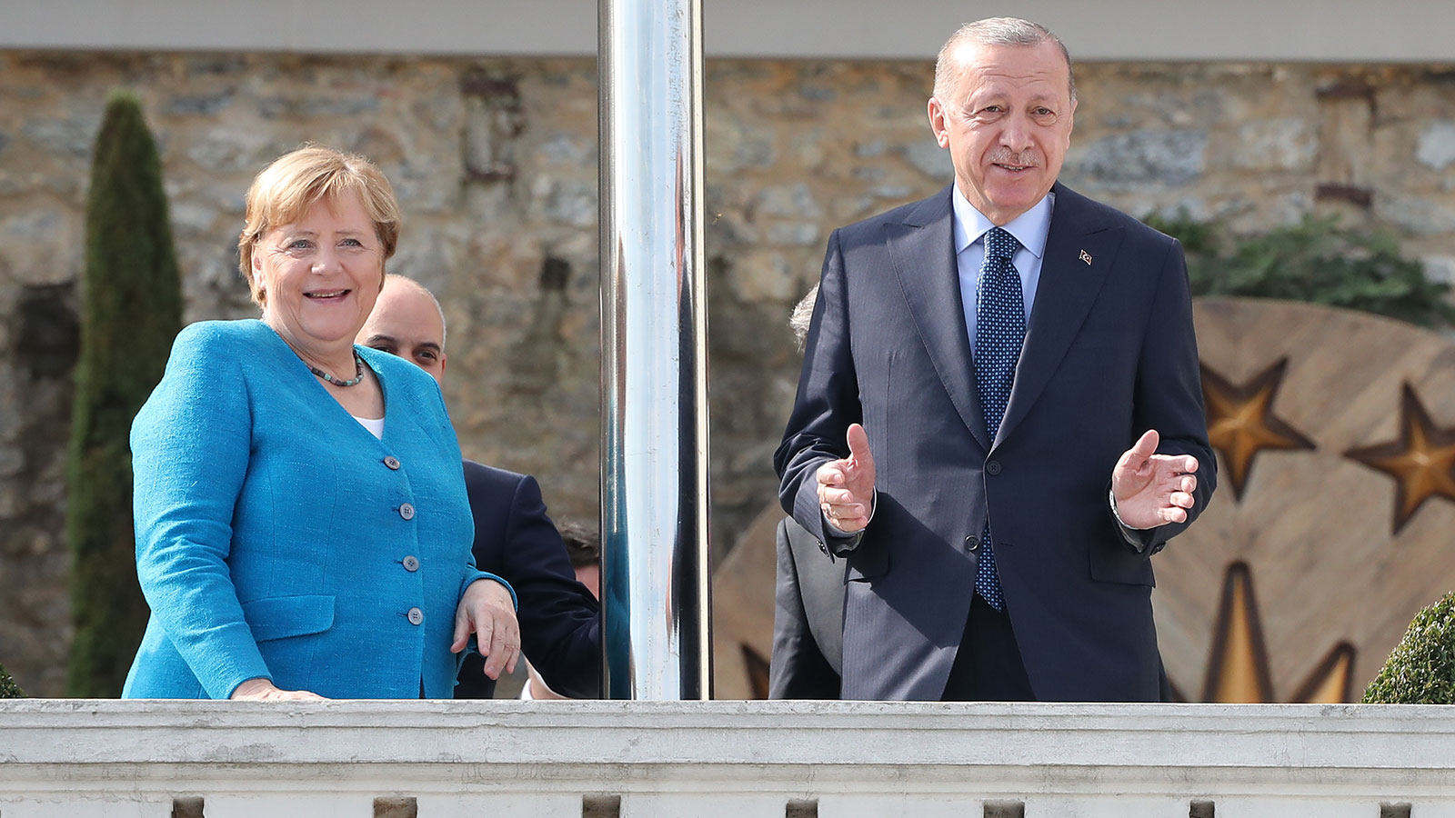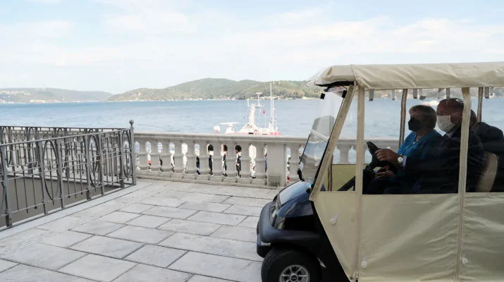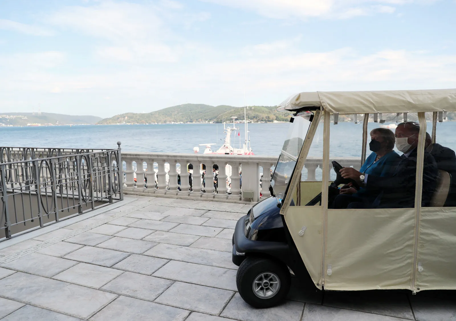 Almanya Başbakanı Angela Merkel, Türkiye Cumhurbaşkanı Recep Tayyip Erdoğan ile Huber Köşkü’nde görüştü. Burada Erdoğan ile golf aracına binen Merkel, köşkün sahil kısmındaki alana geldi.