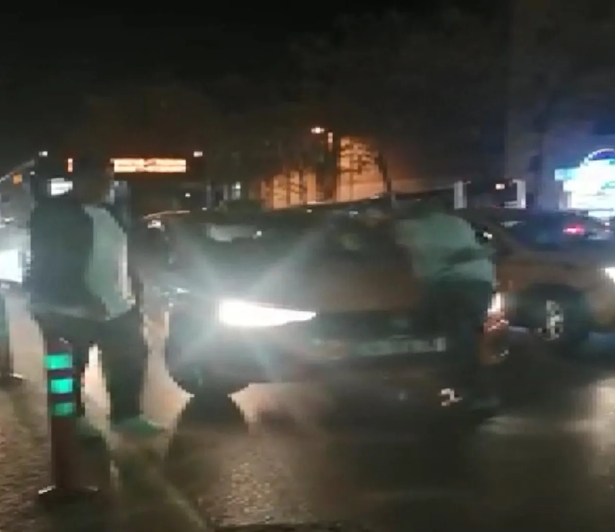 Bu sırada çevredekilerin kenara çekmeye çalıştığı kişi, taksiye tekme de attı. Yaşananlar cep telefonu kamerasına yansıdı.